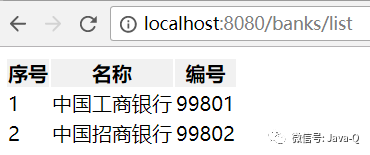 使用freemarker实现查询银行列表,具体结果如下图所示。