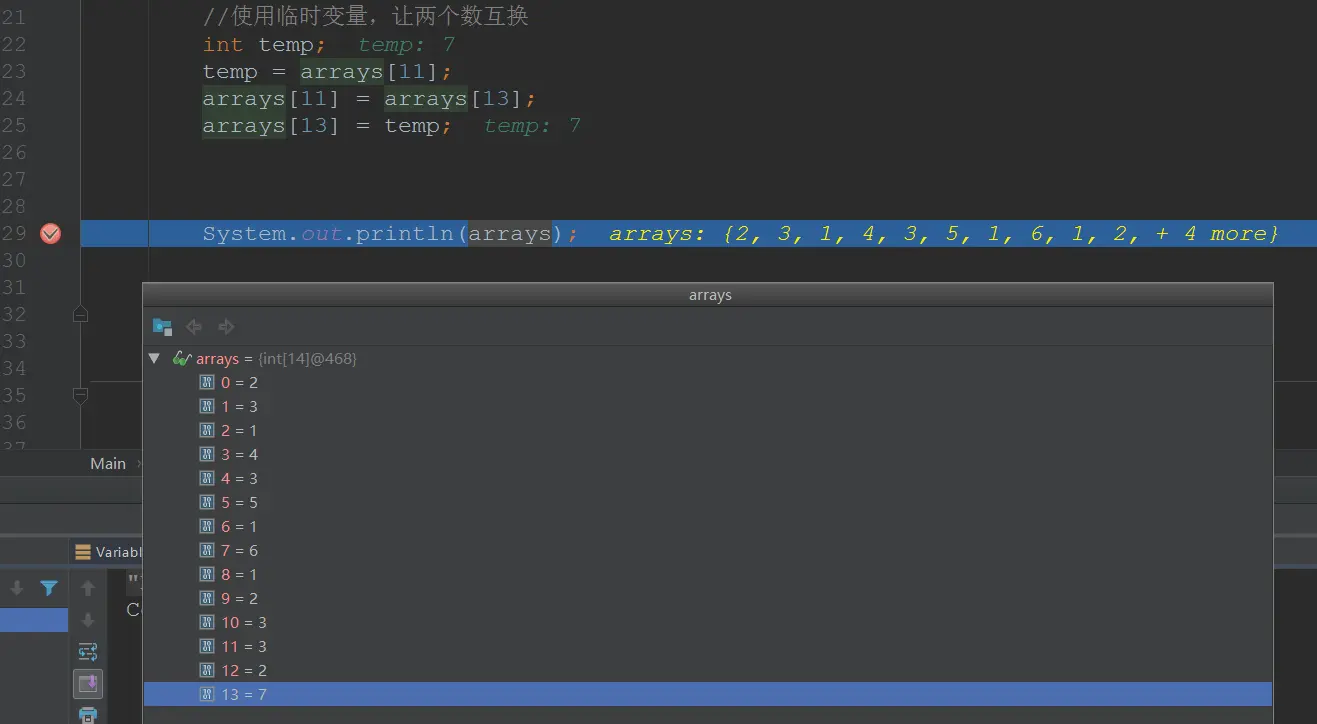 arrays[13] = temp;