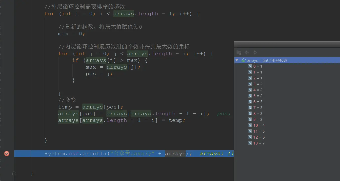 System.out.println("公众号Java3y" + arrays);