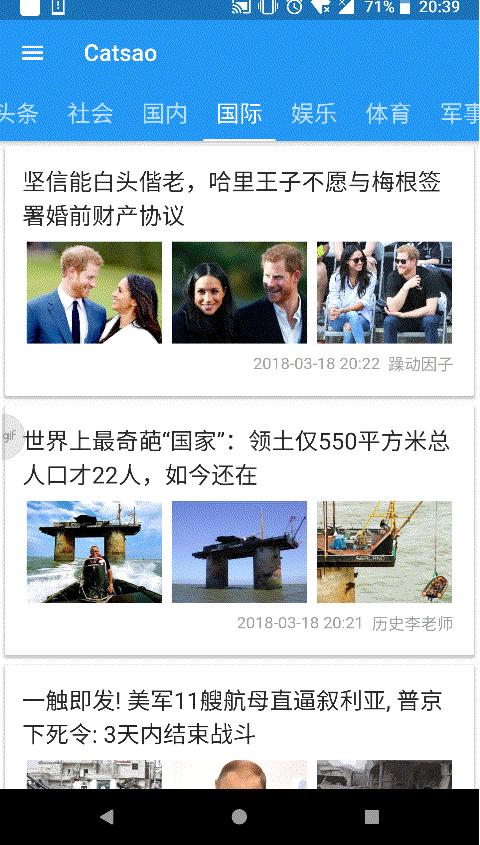 catsao(音:cat骚),我撸的第一个Flutter Application Demo,目前阶段它主要仿造目前主流的新闻资讯类app布局,实现了简单的新闻浏览。我还要继续丰富它,让它越来越sao。