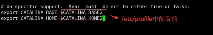 1,第一个tomcat1不变,在tomcat2的bin目录下 vi catalina.sh 文件 , 找到 # OS specific support. $var must be set to either true or false,在这个下面添加