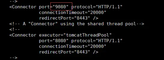 2,第一个tomcat1不变,在tomcat2的conf目录下 vi server.xml