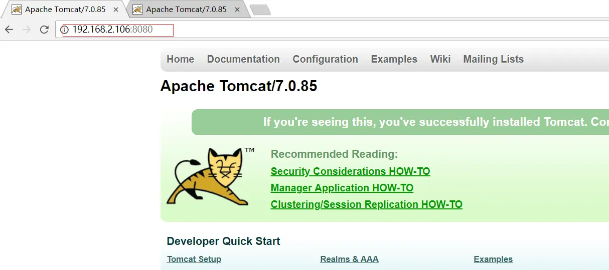我是在window中虚拟机中装的 linux,首先看下 linux中的ip地址(使用ifconfig命令可以查看), 然后 访问 8080和9080(server.xml中配置的) 两个端口,其中把 tomcat2目录下的webapps/root下的tomcat.png换了个图片 用于区分