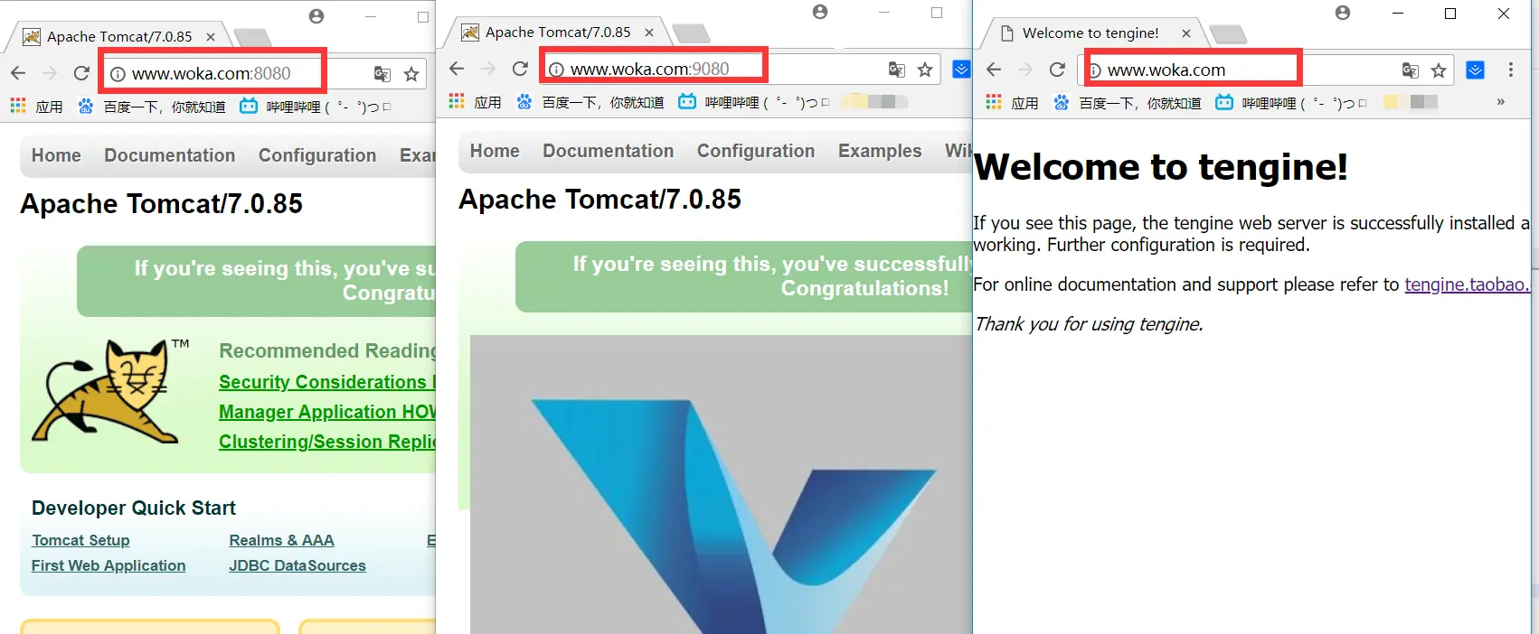 这样的话 分别访问www.woka.com:8080,www.woka.com:9080, www.woka.com:8080 是一样的效果