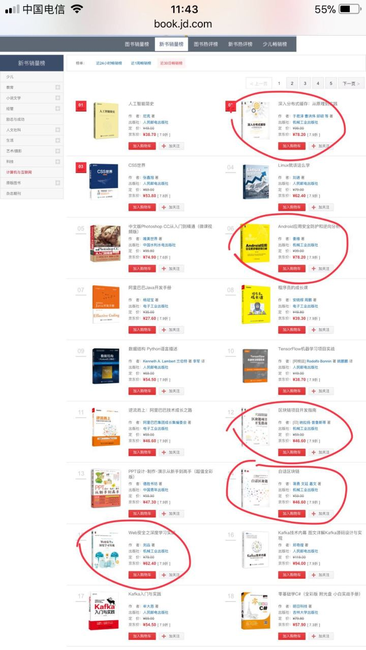 庆祝我的第一本书出版 末座少年 2018-03-19 143 阅读1分钟 虽然是第三作者,仍然很兴奋。再次衷心感谢机工社的高编辑,大神蒋勇,老朋友文延 京东上书的连接: https://item.m.jd.com/product/12236097.html 跻身京东30天新书销售榜Top15(画红圈的都是机械工业出版社出品)