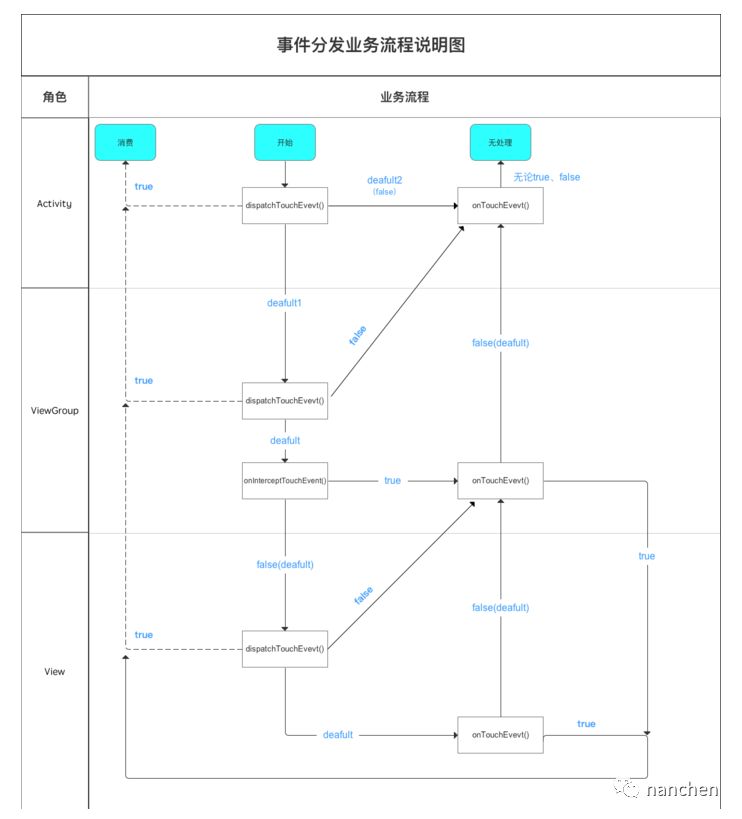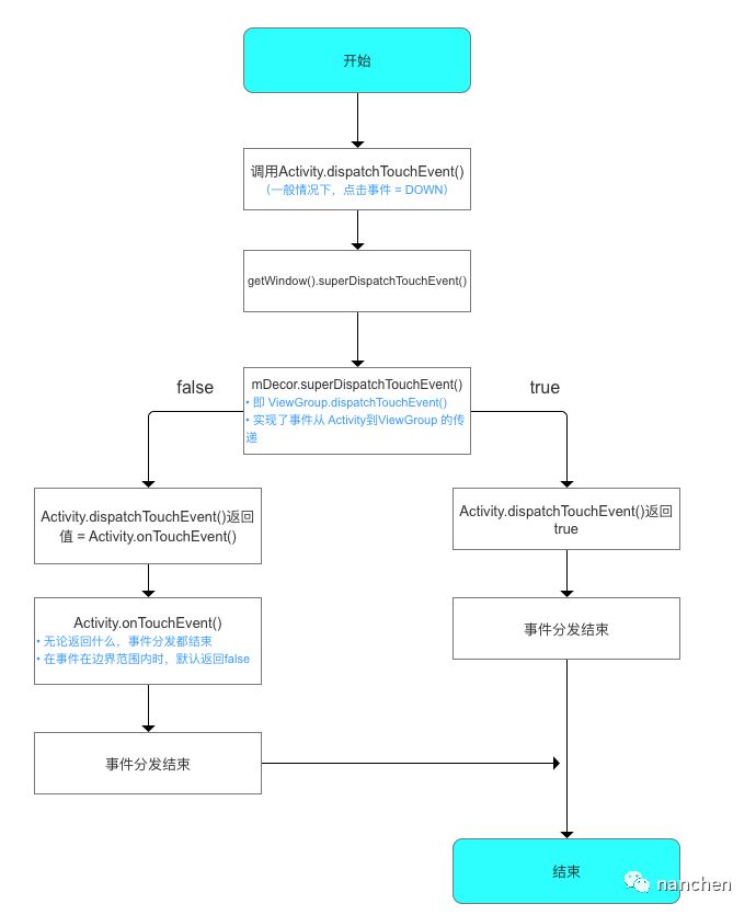 需要总结的小点:1、Android 事件分发总是遵循 Activity => ViewGroup => View 的传递顺序;2、