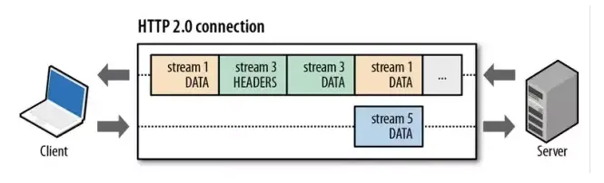 一个request对应一个stream并分配一个id,这样一个连接上可以有多个stream,每个stream的frame可以随机的混杂在一起,接收方可以根据stream id将frame再归属到各自不同的request里面