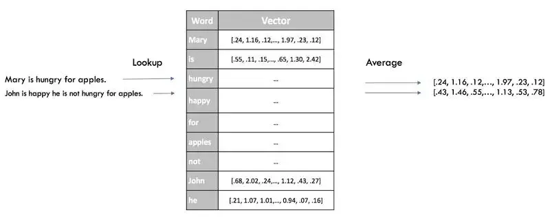一种让句子快速嵌入我们分类器的方法是对句子中所有单词取 Word2Vec 分数的平均值。用的是和之前一样的词袋方法,但是这次我们在保留一些语义信息的时候,仅丢失了句子的语法。