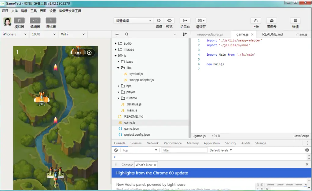 为了帮助开发者简单和高效地开发和调试微信小程序、微信小游戏,微信在原有的公众号网页调试工具的基础上,推出了全新的 微信开发者工具,集成了公众号网页调试和小程序、小游戏开发两种开发模式,而且自带小游戏demo。详情可参考mp.weixin.qq.com。
