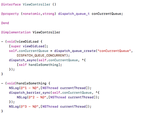 首先,dispatch_barrier_sync栅栏机制跟dispatch_barrier_async讲的一样,它们唯一的区别只是dispatch_barrier_sync是同步函数,跟dispatch_sync一样,阻塞当前队列。这里就不展开分析了。这个函数我主要说下要注意的问题。前面我讲过死锁的触发条件,而这个dispatch_barrier_sync函数的栅栏机制很特殊,可以说很苛刻了。下面我们来看下代码:
