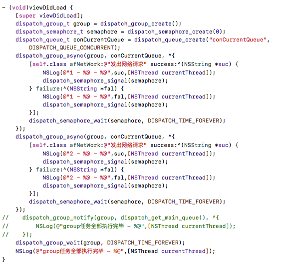 注意,这里如果想用dispatch_group_wait来控制的话,看下面代码:
