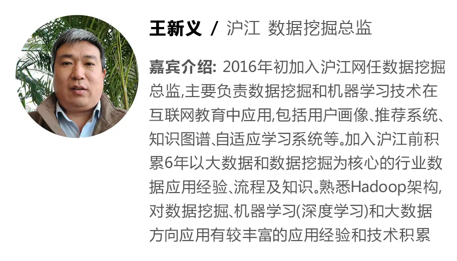 教育是最传统和复杂的社会活动,如何使用AI(机器学习)技术改造和促进人类自身学习(提高学习效率和学习效果) ,是互联网教育大数据及挖掘的基本问题;简单介绍AI 技术应用沪江各个产品线(核心包括辅助学生“个性化”学习和辅助教师教学工作)的情况,重点分享:使用DM、ML技术结合RM(Retention Model)、IRT(Item Response Theory)、DKT(Deep Knowledge Tracing)等模型在开心词场中应用实践和认识。
