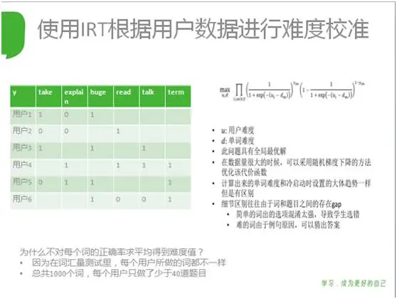 基于IRT模型的自适应词汇量测试:基于IRT模型最少用户交互准确评估用户的词汇量,在自适应词汇量测试的基础上,推荐一些合理的词书。