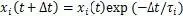 MCM提出了一个假设,每次新的学习学到的东西是分别存储在不同的轨迹中,而且会按照不同的速率衰减。虽然每条迹会指数衰减,这些轨迹的和随着时间的衰减是一个幂函数,丼例来说,第i条轨迹,xi的衰减如下面公式所示: