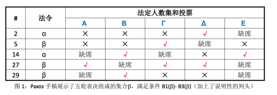 Paxos数学家为所有投票定义了一个全局顺序,但是手稿里包含了这个定义那一部分遗失了,剩下的片段显示,对于任意