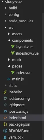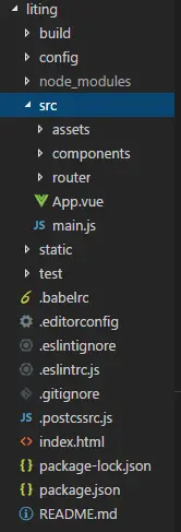 解说一个vue项目的流程,从项目的搭建到实现,首先展示一个vue项目的结构:
