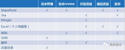 在以前的研发过程中,不同角色在研发流程中的各个环节使用不同工具管理自己的任务信息,如图8-2所示。