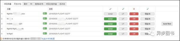 (6)提交测试,QA人员手工把相关的工程、分支名称、各种发布参数填到发布平台,再去CI里查看各种质量检查结果。