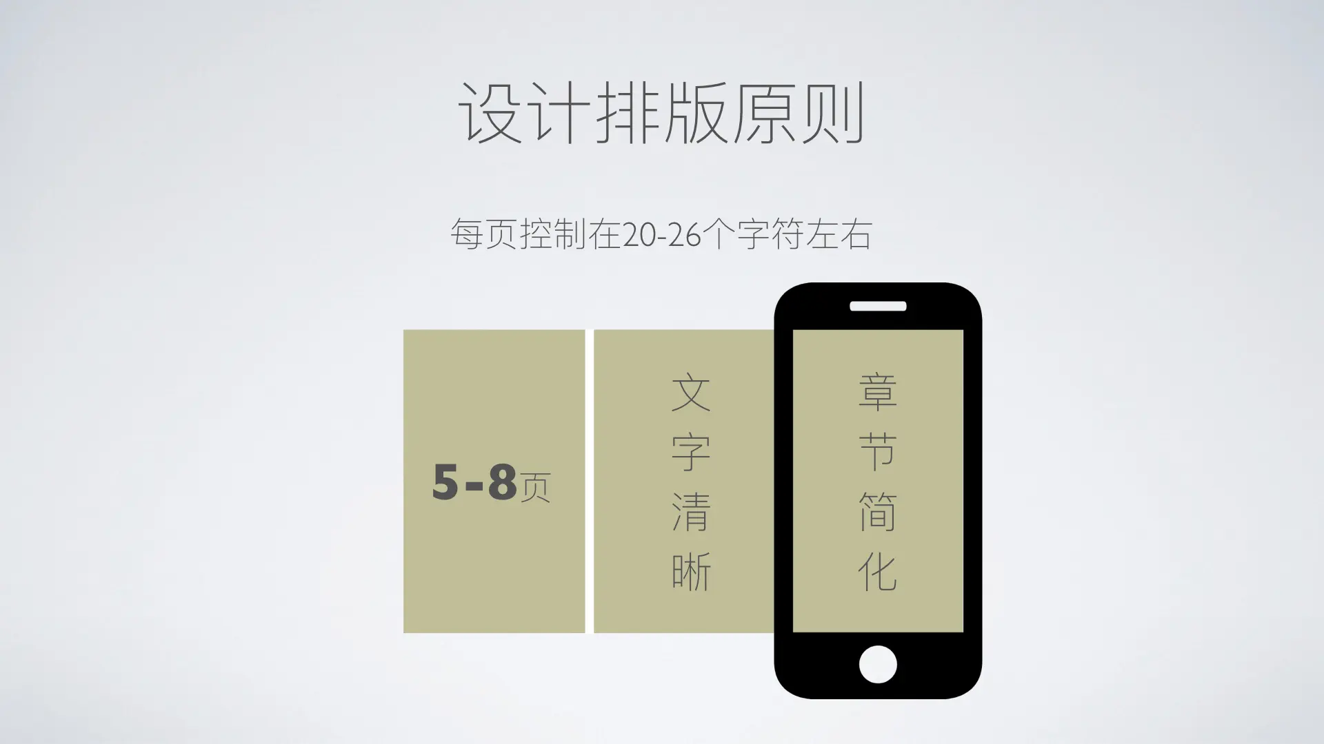 移动端设计寸土寸金,所以要尽量主题明确,页面数量也要控制在5-8页面,不要让用户产生疲劳。