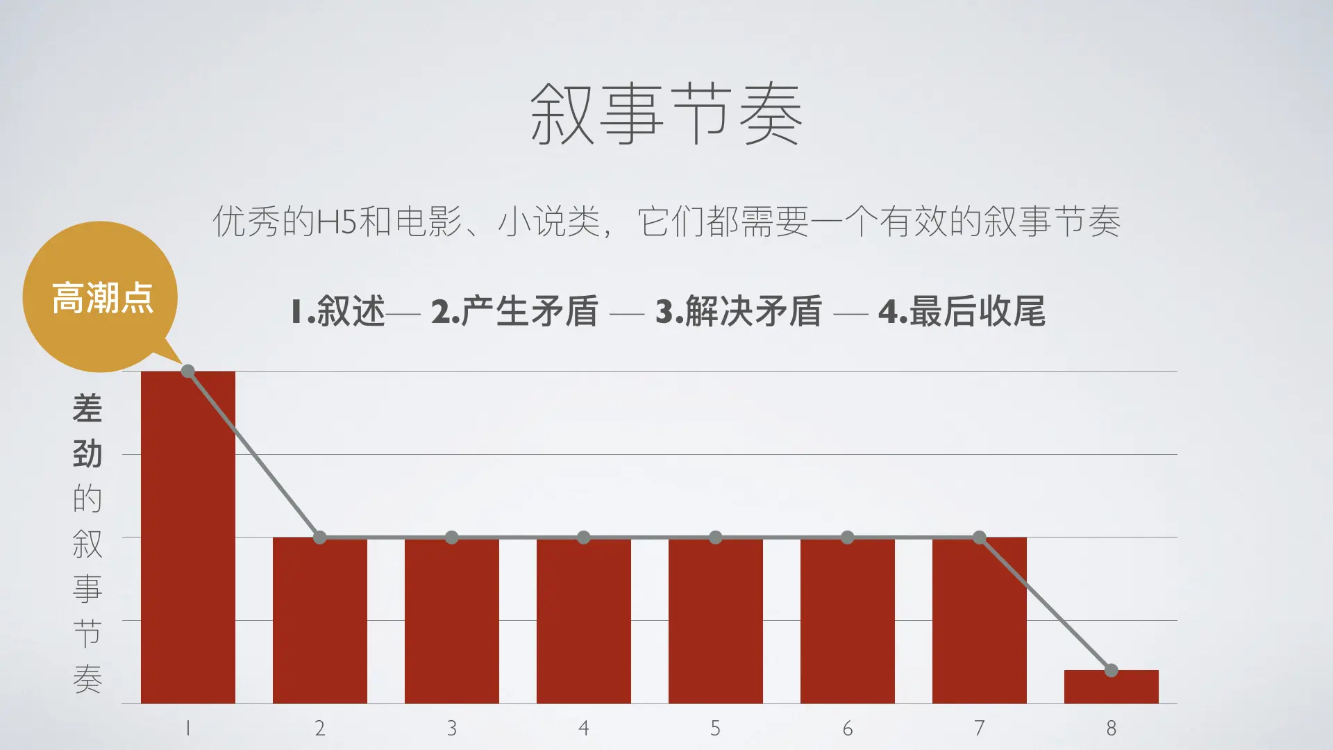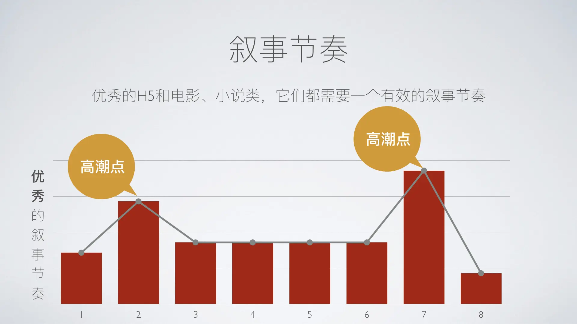 H5的原型要具备的因素,视觉、动效、节奏、音效、交互、可实施性 视觉是指我们的视觉风格,海报类?60年代风格?动效、声效与交互形式的结合,加上好的叙事节奏以及切实可行的实施方案才能支撑起一个H5原型。