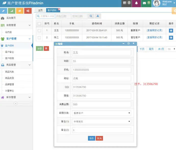 . 客户资料:记录客户资料,备注客户信息,跟踪记录客户状况