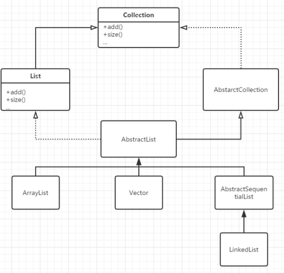 public class ArrayList<E> extends AbstractList<E> implements List<E>, RandomAccess, Cloneable, java.io.Serializable 1.AbstractList提供了List接口的默认实现(个别方法为抽象方法)。2.List接口定义了列表必须实现的方法。