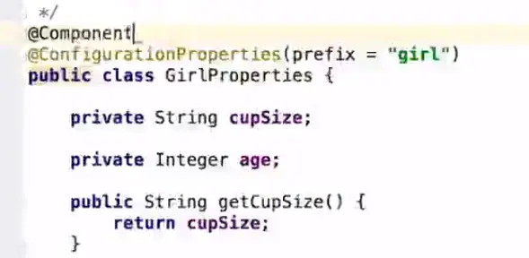 那么在获取的时候就不需要使用@value属性来分别获取了。直接获取Java类的成员变量就行了。