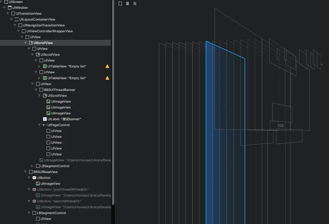 这里通过封装将TableView的实现集成到BBSUIThreadListViewController里,通过block的方式拿到contentOffSet
