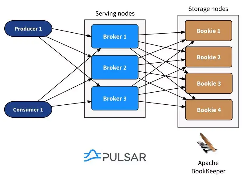 Apache Pulsar 依赖 Apache BookKeeper 实现持久的消息存储,可同时支持这两种地域复制方法。