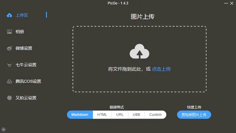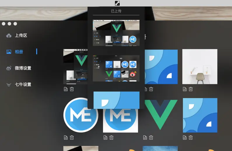 针对不同的平台,我对PicGo的任务栏图标交互也有所区别。对于macOS而言,点击顶部菜单栏的时候会弹出一个小窗口: