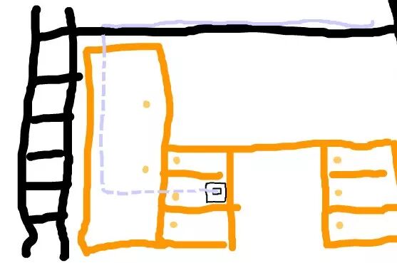 为了不暴露没电脑还插着根网线那么荒唐,于是尽量沿着有遮挡的柜子布线,从衣柜后一直拖到床铺。剩下的水平部分就埋在床边的缝隙里,并用席子盖着。