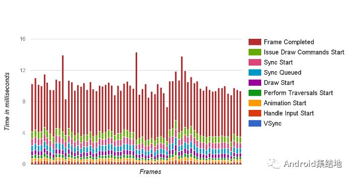 横轴表示时间,纵轴表示每一帧的耗时;