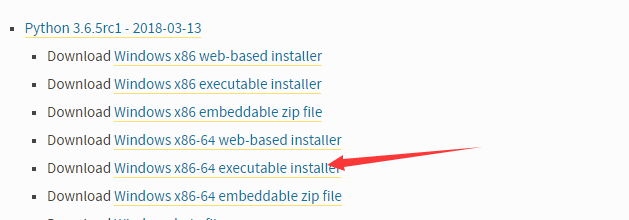 到官网下载python安装程序,官网地址:https://www.python.org/ 下载最新的安装程序,3.6.X以上,确保版本的一致性。我下载的是3.6.5的 Download Windows x86-64 executable installer(我的电脑win10 64位)
