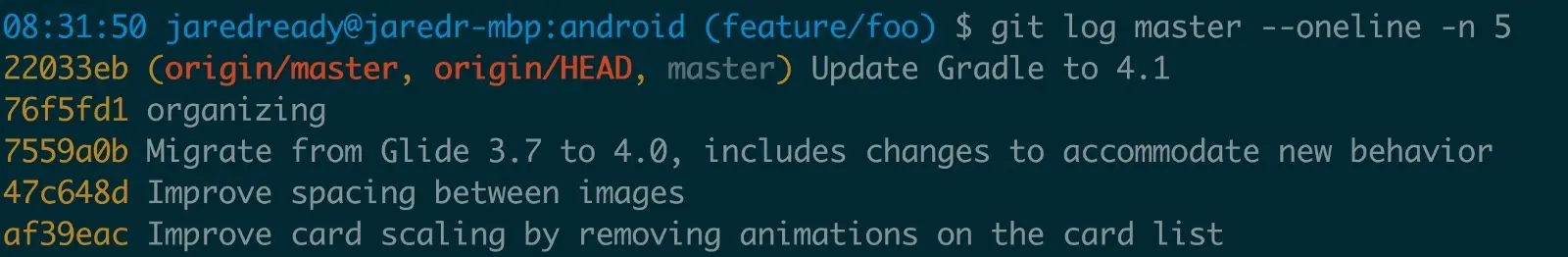 当然,一个简单方式是使用 git log 来看我们从这组减法中得到的确切提交。