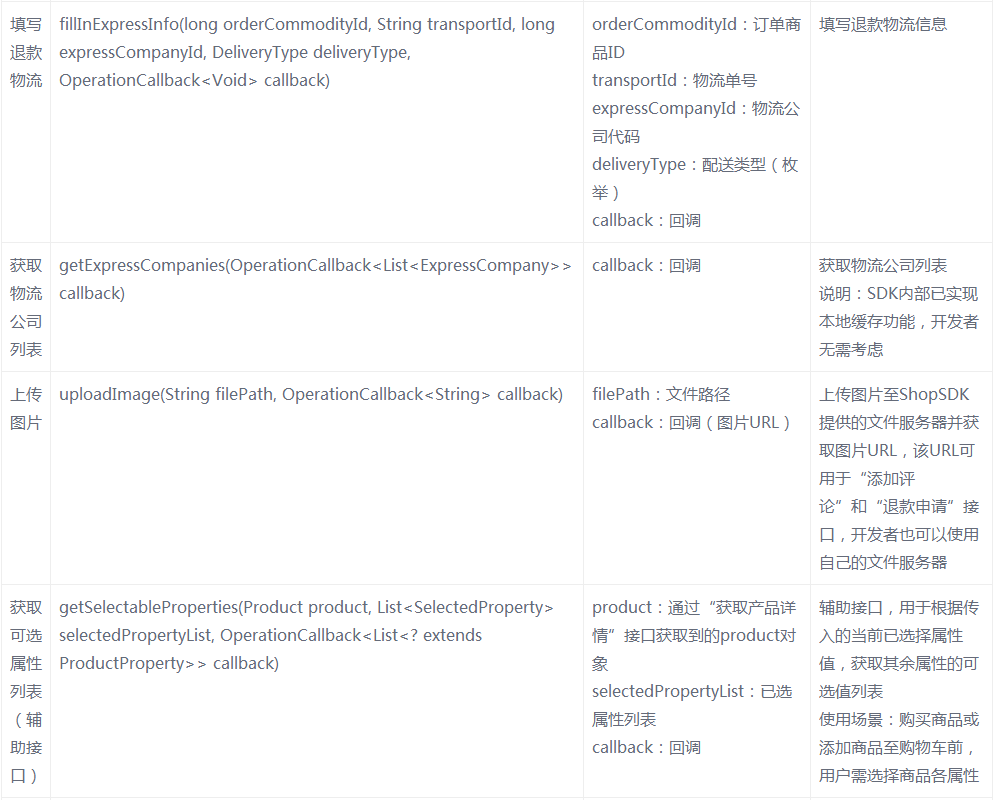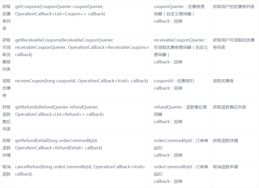 OperationCallback是ShopSDK的回调接口,用于返回结果。