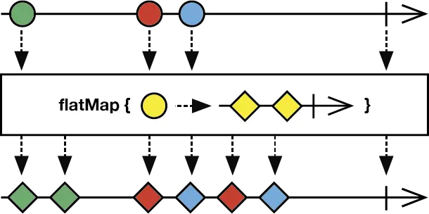 将一个序列发送的数据转换成另一个新的序列,生成的新序列会按照先后顺序平压到一个序列之中.