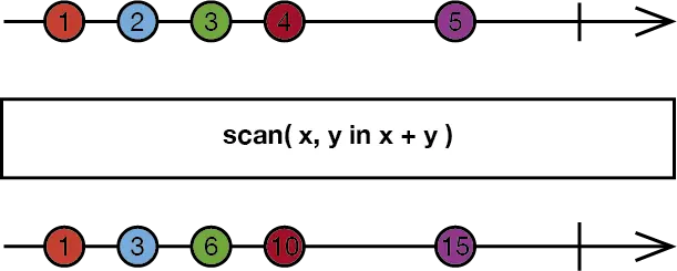 scan会要求有一个初始值,通过闭包对前一个元素和当前元素做处理,并将处理的元素放在一个序列中返回.