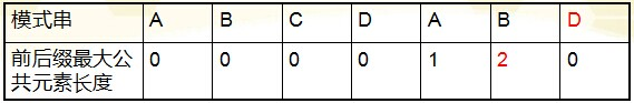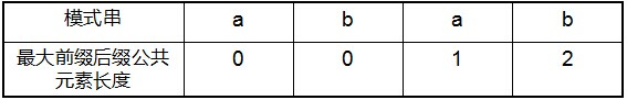 也就是说,原模式串子串对应的各个前缀后缀的公共元素的最大长度表为(下简称《最大长度表》):
