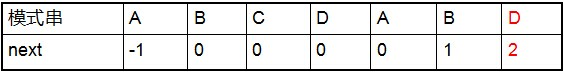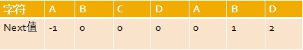 然后这5个数字 全部整体右移一位,且初值赋为-1,即得到其next 数组:-1 0 0 1 2。