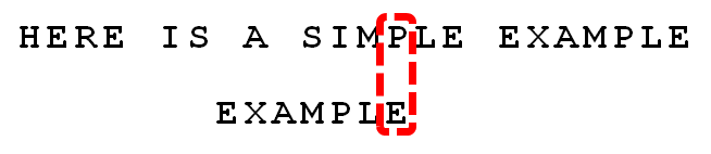 2. 依然从尾部开始比较,发现"P"与"E"不匹配,所以"P"是"坏字符"。但是,"P"包含在模式串"EXAMPLE"之中。因为“P”这个“坏字符”对应着模式串的第6位(从0开始编号),且在模式串中的最右出现位置为4,所以,将模式串后移6-4=2位,两个"P"对齐。
