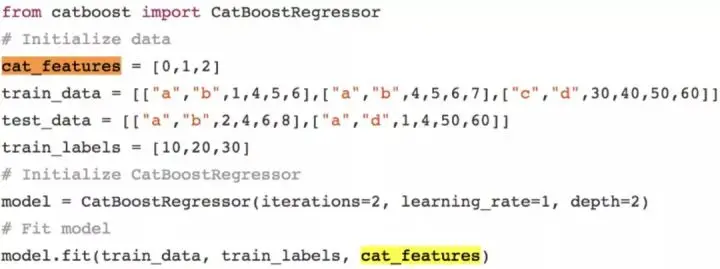 注意,如果某一列数据中包含字符串值,CatBoost 算法就会抛出错误。另外,带有默认值的 int 型变量也会默认被当成数值数据处理。在 CatBoost 中,必须对变量进行声明,才可以让算法将其作为分类变量处理。