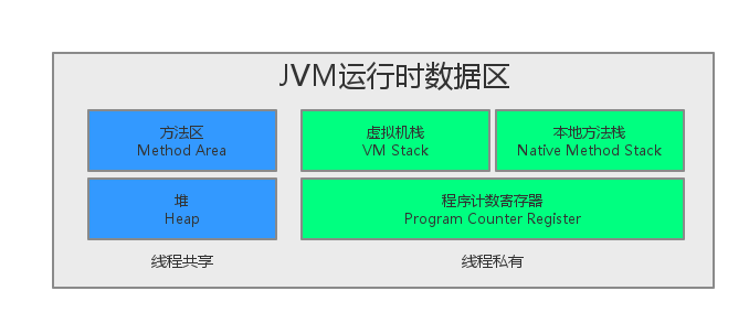 这其中有一些是随着虚拟机的启动和退出而创建和销毁的,这些区域是线程共享的,另外有一些是跟各个线程绑定的,随着线程的开始和结束而创建和销毁,我们可以称这些区域是线程私有的。