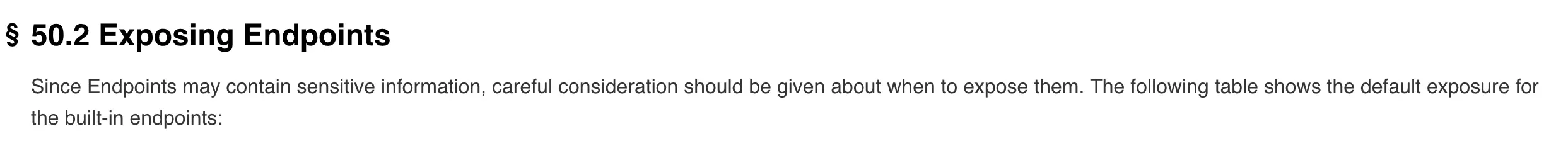 在docs.spring.io | 50.2 Exposing Endpoints这个文档讲到了: