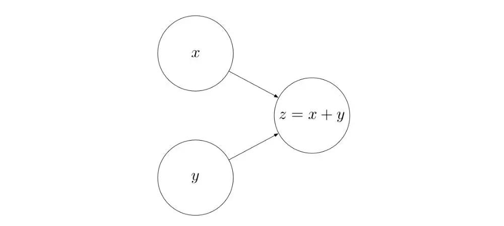 下例中的 computational graph 把两个输入 x 和 y 相加,计算得总和 z。