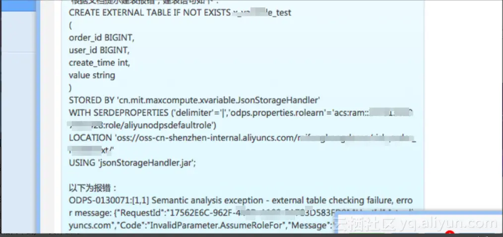DDL syntax error:ODPS-0130071:Semantic analysis exception - unrecognized option 'EXTERNAL'.