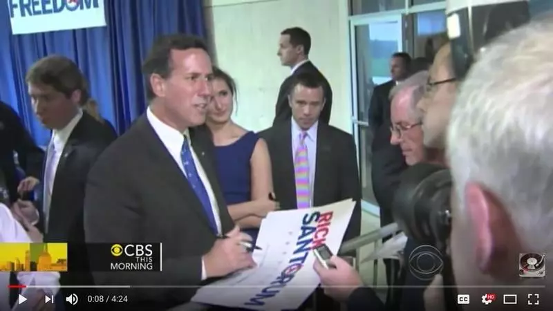 你可以通过暂停任何 YouTube 视频来自行测试。要注意人们的面部表情有时会显得很奇怪,有时变得模糊或变得不像本人。下面是 Rick Santorum 的影片的冻结帧的例子。