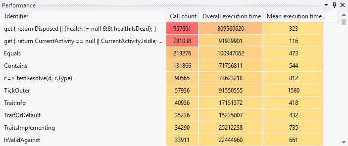 它将耗时最长的10个方法,以及调用最频繁的5个方法,展示在面板上。