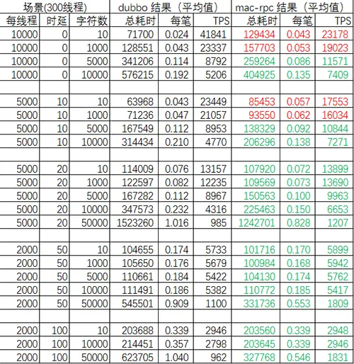 异步调用的评测见:《dubbo vs mac-rpc 性能评测之异步调用》
