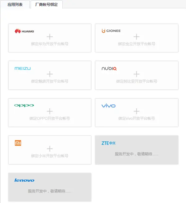 三、绑定厂商开发者帐号