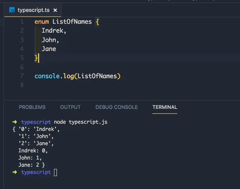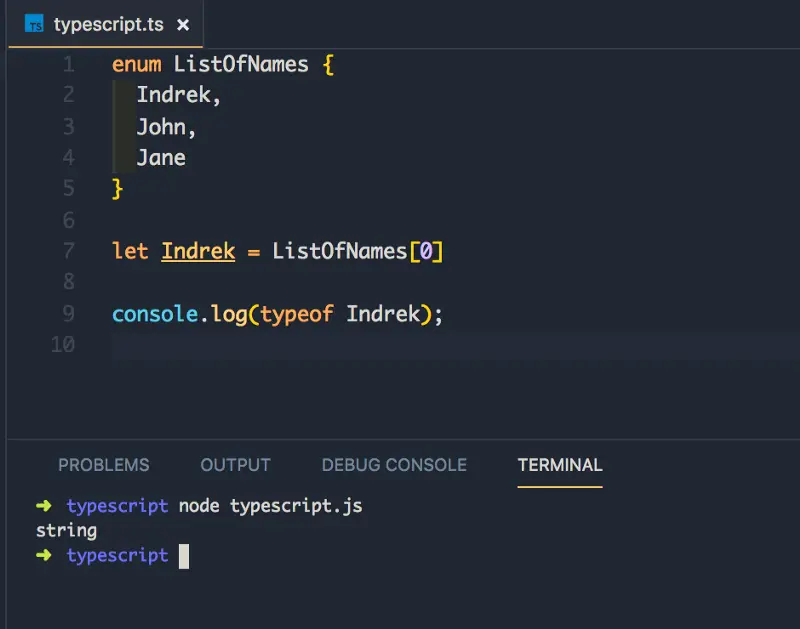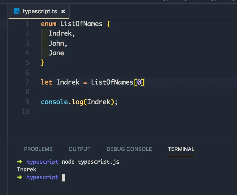 但这样返回的是这个值的整数索引,和数组一样,枚举类型的索引也是从 0 开始的。